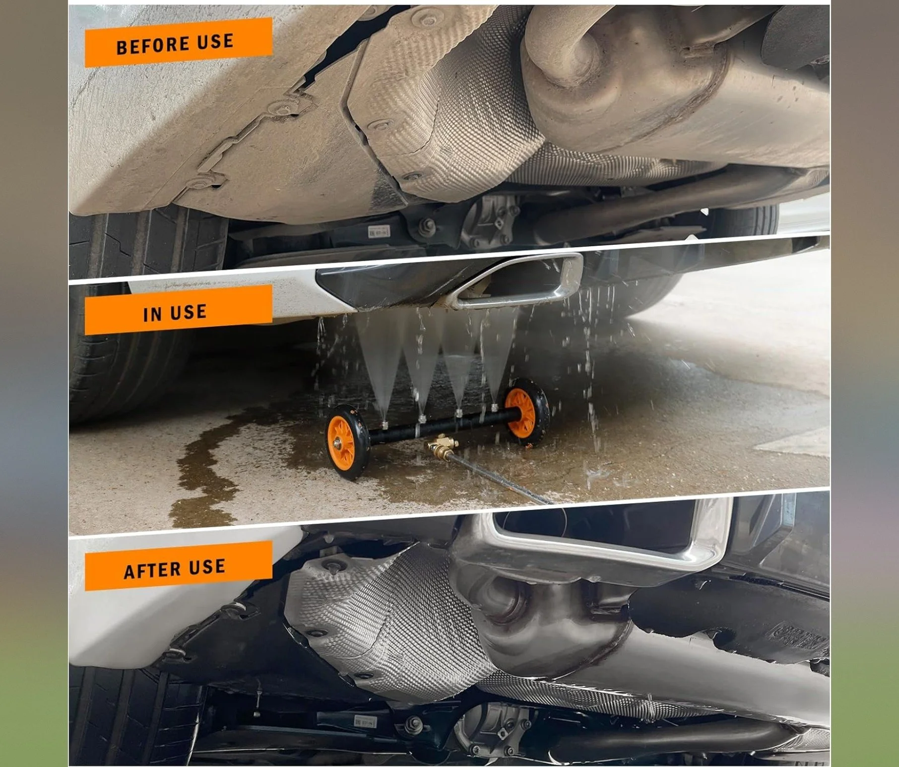 The undercarriage is often the dirtiest part, as it collects dirt,debris, grease, salt, mud and other contaminants from the road. Using water broom helps dislodge any accumulated on the undercarriage .